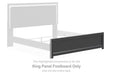 This king panel footboard is made with engineered wood (MDF/particleboard/plywood) and decorative laminate. Pairs with other items in the series to make a bed kit.