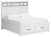 This king panel storage bed delivers casual style with substance. An inset metal detail on the headboard displays a unique take on modern farmhouse design. The bed's sturdy silhouette, classic white finish and black pulls exude a comfortably cozy vibe in your soothing sanctuary. Storage drawers are spacious enough for all your essentials.