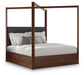 Casual contemporary styling with a decidedly modern vibe. Bathed in a rich dark brown finish, this king canopy bed is warm and inviting, while the integrated “X” canopy and full wrap-around rails set to the floor adorn your restful retreat with on-trend elegance. Dual USB charging on both sides of the upholstered headboard is a subtly cool way to keep your electronics at the ready. What a simply stunning way to achieve the bedroom of your dreams.
