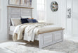 Beautifully simple yet rich with character, this queen panel bed is a dream come true. It masters the art of simplicity with charming two-tone style. The gently weathered white finish is complemented by replicated oak grain on the headboard and footboard. Crown moulding and decorative turned posts add appeal. If farmhouse style is calling your name, answer with this timeless treasure.
