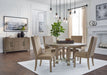 Chrestner - Brown / Beige - 6 Pc. - Round Dining Room Table, 4 Side Chairs, Server