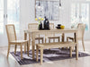 Gleanville - Light Brown - 6 Pc. - Rectangular Dining Room Table, 4 Side Chairs, Large Bench