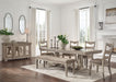 Lexorne - Gray - 8 Pc. - Dining Extension Table, 4 Side Chairs, Bench, Server