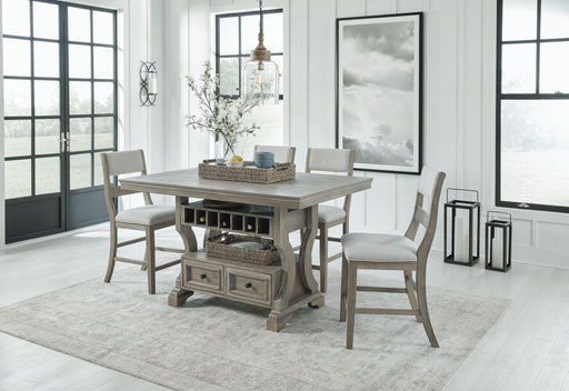 Moreshire - Bisque - 5 Pc. - Counter Table, 4 Upholstered Barstools