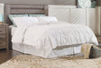- Warm gray vintage finish with white wax effect over replicated oak grain