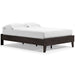 The perfect marriage of contemporary and casual style, this full platform bed is a charming addition to your home. The bed keeps things simple with its dark charcoal finish over replicated oak grain. Best of all, it includes a footboard, rails and platform, so no additional foundation or box spring are needed.