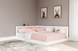 This full bookcase storage bed is an inspired find, beautifully blending contemporary and casual style. Its two-tone look in matte white and a replicated sugarberry wood grain pattern keeps things simple, while the bookshelf storage creates added function. This charming storage bed also offers slim-profile dual USB chargers and requires no additional foundation.