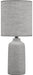 Add a casual modern look to your home with this table lamp. Its textured body is accented with a raised diamond pattern of clean lines and grooves, while brass-tone fittings provide a glamorous touch. Paired with a charcoal drum shade, this ceramic lamp is striking in transitional to contemporary environments.