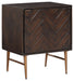 Keep things contemporary cool with this accent cabinet. Its dark brown finish and goldtone metal hardware lend an urban touch. The chevron patterned door front adds geometric flair, making this storage solution a must-have.