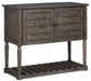 Storage and style are made easy with this accent cabinet. The plank door front and open air storage shelf bring a natural look, while pewter finished hardware adds an industrial touch. In an antiqued gray finish, this accent cabinet offers endless design possibilities.