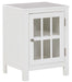 Casual style and function are made easy with this accent cabinet. This versatile storage solution in a white finish is a perfect place to stack bowls, plates and linens. The lattice door front with clear inset glass allows you to show off its contents, allowing for endless decorative possibilities.