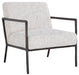 A modern take on classic design, this accent chair provides both flair and function. Richly neutral upholstery gives off a vibe of easy elegance, bringing home high-end style for everyday living. An antiqued black finish on the frame has an edgy look that remains versatile, suiting spaces from casual to contemporary.