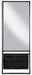 Simply striking and strikingly simple. With its ultra clean lines and a mixed-media look of faux leather pockets and black finished metal, this floor mirror is a complementary choice for so many spaces.
