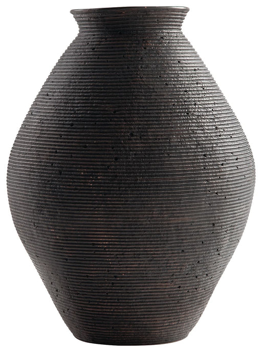 $0.00| /Ribbed textural rings give this vase a wonderful artisanal quality. An antiqued brown finish catches the eye, drawing attention to this elegantly e...