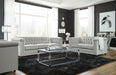 With a timeless classic Chesterfield styling that's very much in vogue, this set makes a brilliant statement in a beautifully neutral silvery gray velvet fabric that looks as good as it feels. Nailhead trim, button tufting and high shelter arms give the sofa an effortlessly elegant appeal. The hidden leg design is an on-trend addition for modern spaces.
