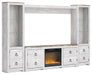 Willowton - Whitewash - 4-Piece Entertainment Center With 72" TV Stand And Glass/Stone Fireplace Insert